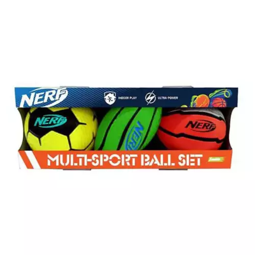 Practice and play basketball, football and soccer with the Mini Sports Pack. Each ball is about 5 inches in diameter. Set comes with basketball, football, and soccer ball. Soft foam material makes this set fun and safe for all kids 3 years and older. Size 5. Color Yellow, Green, Red