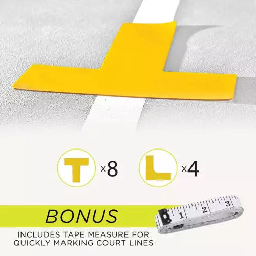 The Franklin Sports Pickleball Court Marker Kit easily transforms any court area into a quick pickleball court. The kit includes (4) L-shaped and (8) T-shaped flexible court markers that can be easily transported with you from court to court. The easy-care material is surface wipeable for easy cleanup and the bright color clearly identifies the court lines.