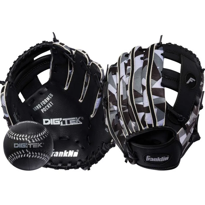 The Franklin Sports RTP DIGITEK Teeball Glove is the perfect first teeball glove for any young ballplayer. The super soft, lightweight construction make it easy for young players to throw and catch indoors and out. With a durable leather heel patch and a touch of digital camo flair, you can be sure to count on this glove for game-time performance.