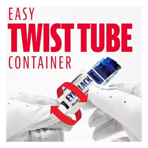 Franklin Sports NEW MLB Premium Colored Eye Black sticks combine performance, quality, and style. Enhance your visibility under sun or stadium lights with an eye black color that matches your team uniform! Engineered to offer a superior sweat-resistant formulation that will keep you dry and confident. Available in a variety of colors: Pure Black, Steel Blue, Ember Red, and our unique USA Tri-Color stick featured on-field!