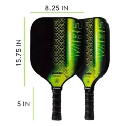 Take your pickleball game to the next level with the USA Pickleball (USAPA) approved Franklin Sports Vibe Pickleball Paddle! This polypropylene core pro pickleball racket is lightweight and designed for high performance. The honeycomb 13mm polypropylene core provides a strong, durable construction that is built to last, while only weighing from 7.7 – 8.2 ounces. This lightweight pickleball racket is also constructed with a non-slip, comfort grip that makes it easy to control on the court. The paddle is coated with our MaxGrit fiberglass surface layer, increasing traction on the pickleball for ultimate spin and finesse shots. Complete with a rugged edge protection band, this pickleball racket is built to perform at the highest level year after year.