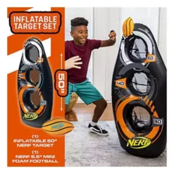 - INFLATABLE TARGET SET: This set comes with (1) inflatable NERF target and (1) NERF mini foam football so you can put your throwing accuracy to the test